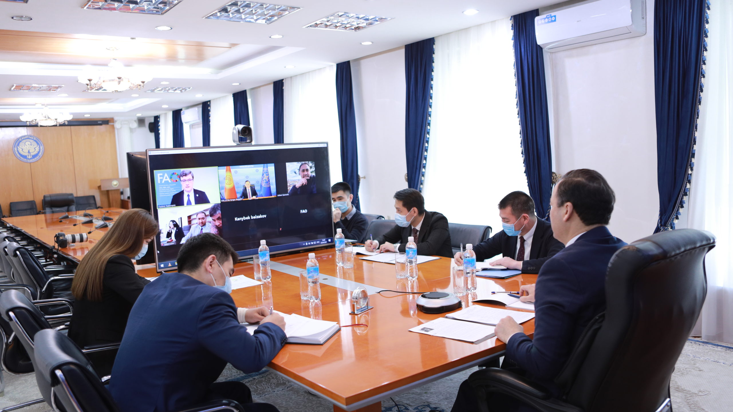Анын жүрүшүндө 49.9 млн. долларлык жалпы бюджет менен Жашыл климаттык фонд (ЖКФ) менен бирдикте ФАОнун «Кыргыз Республикасында токойлорго жана жайыттарга инвестициялардын ортомчулугу аркылуу углеродду секвестрациялоо» долбоорун ишке киргизүү маселеси талкууланды.