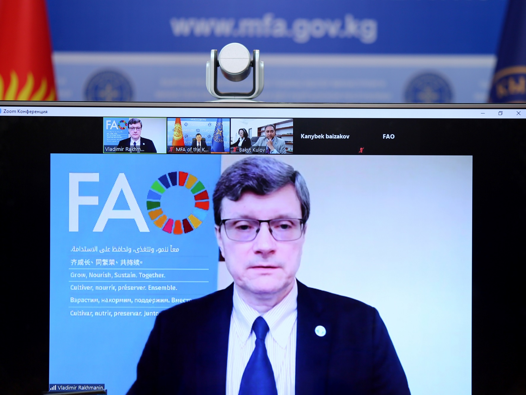 Бүгүн, 23-апрелде тышкы иштер министри Руслан Казакбаев Бириккен Улуттардын Азык-түлүк жана айыл чарба уюмунун (ФАО) башкы директорунун орун басары Владимир Рахманин менен жолугушуу өткөрдү.