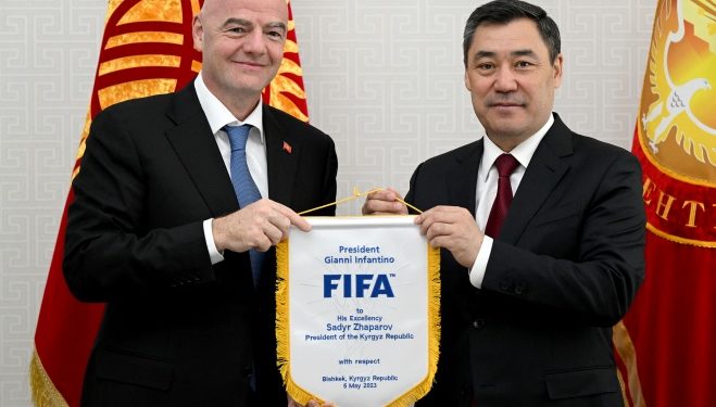 Президент Садыр Жапаров бүгүн, 5-майда бир күн мурун Бишкекке келген Эл аралык футбол федерациясынын президенти Жанни Инфантинону кабыл алды.