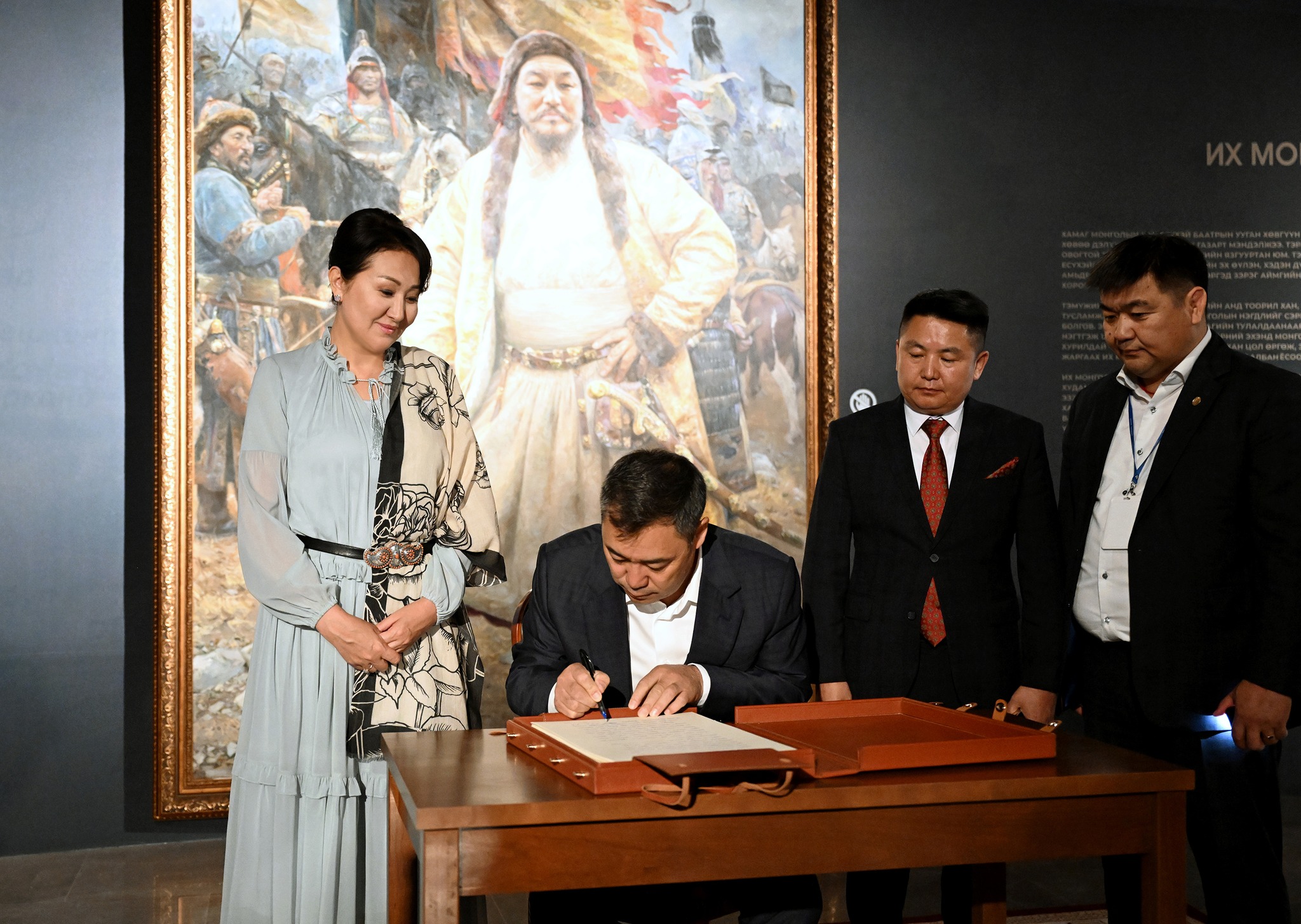 Мамлекет башчысына музейдин жаралуу тарыхы жана анын экспонаттары, көргөзмөгө коюлган эстеликтер, хандардын жана ак сөөктөрдүн, ошондой эле Чыңгызхандын династиясынын тарыхын чагылдырган артефакттар тууралуу айтып беришти. Музейдин өзү — эл аралык музей стандарттарына жооп берген, заманбап технологиялар менен жабдылган 9 кабаттуу имарат. Анда убактылуу жана туруктуу көргөзмөлөргө арналган тогуз залы бар. Ошондой эле музейде көргөзмө-реставрация лабораториясы, эки окуу залы, китепкана, мини-кинотеатр, «Күмүш дарак» залы көрүүчүлөрдүн назарына коюлган. Президент Садыр Жапаров Чыңгызхандын мурасын сактоонун маанилүүлүгүн айтып, музей фондунун байлыгын жана кайталангыс өзгөчөлүгүн баса белгиледи.