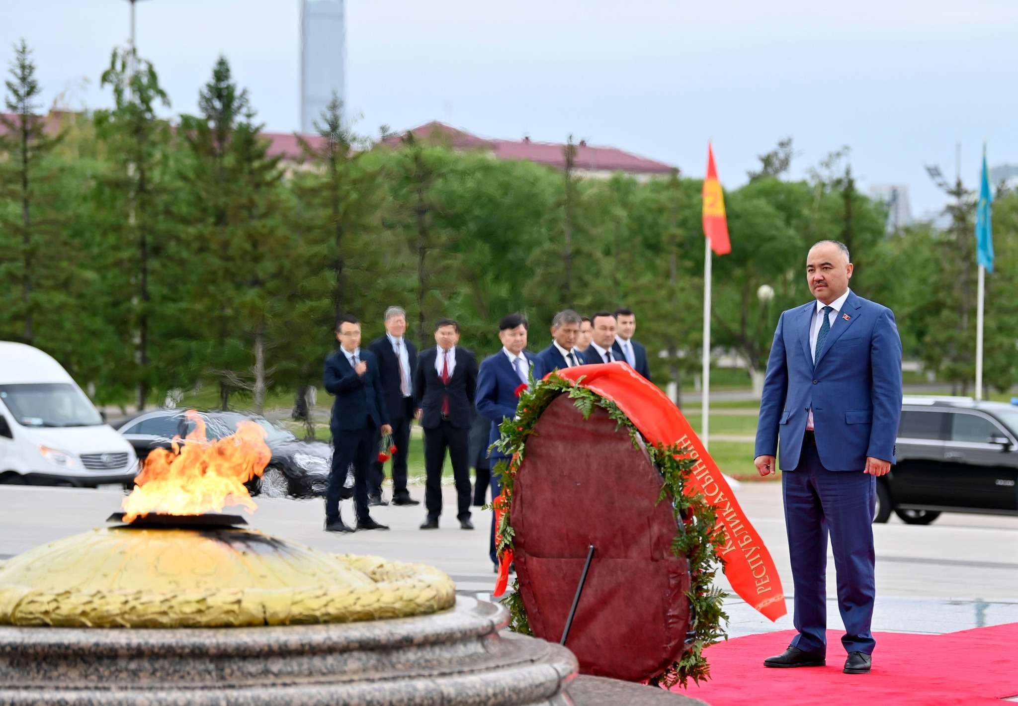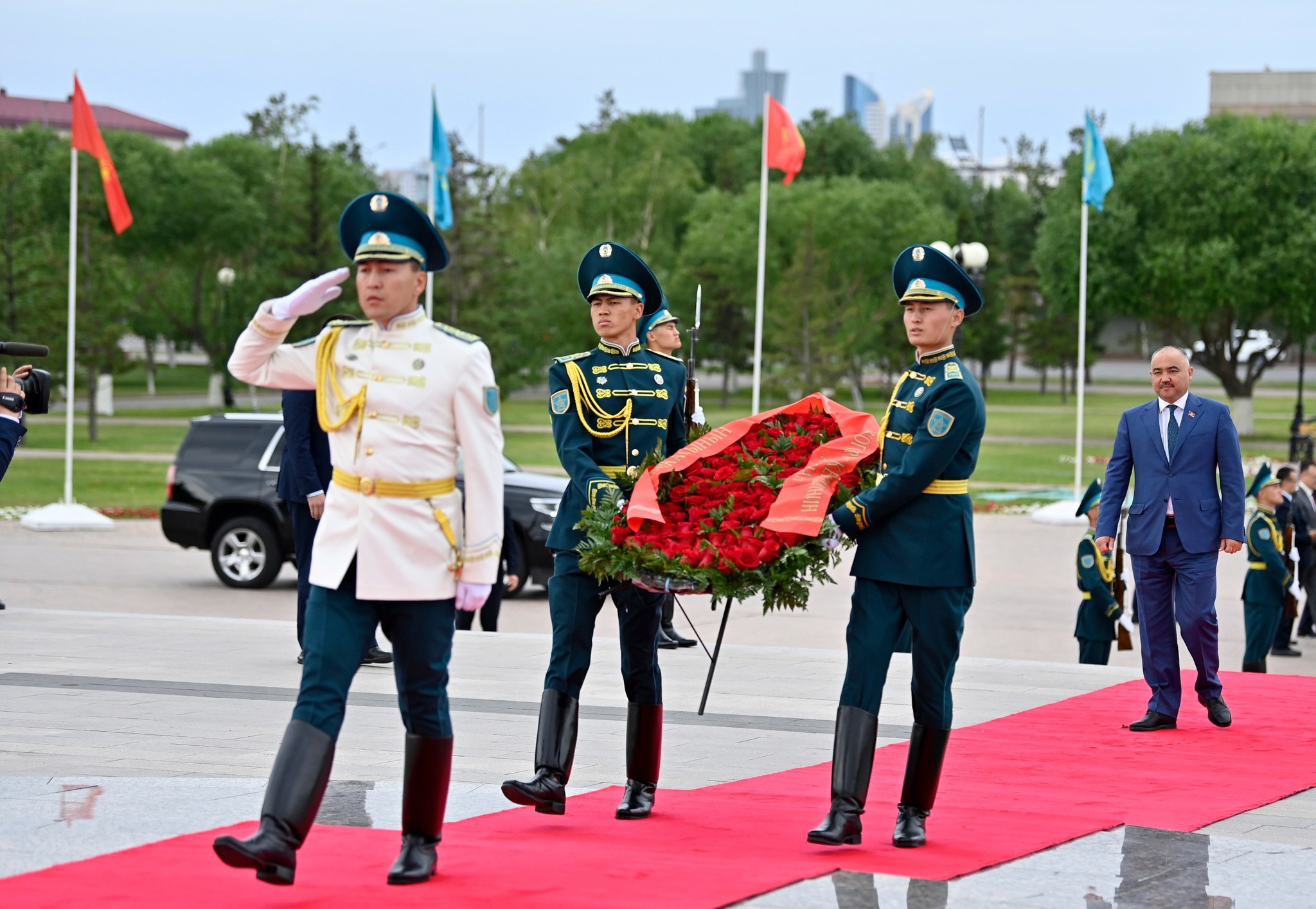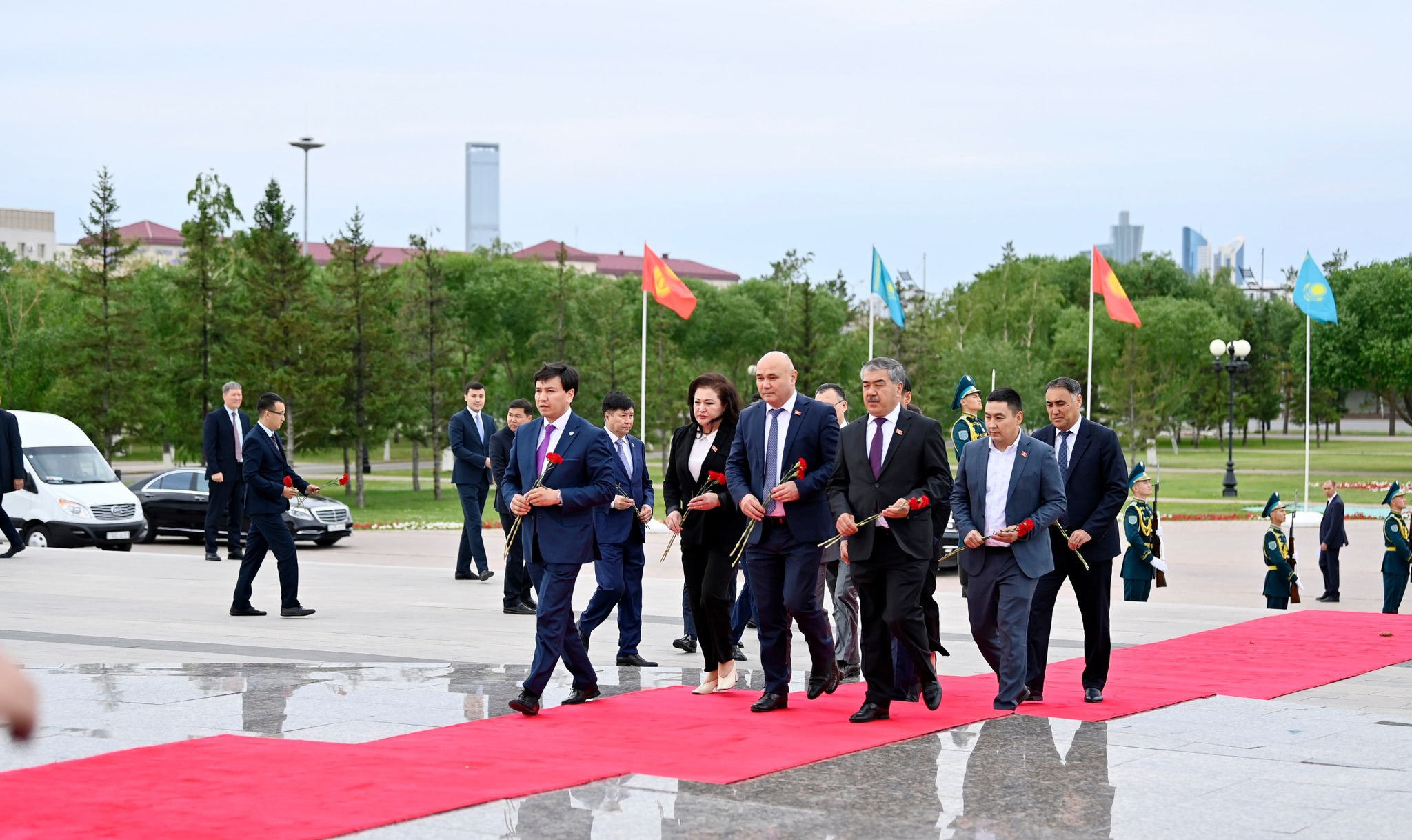 Жогорку Кеңештин төрагасы Нурланбек Шакиевдин Казакстандагы расмий иш сапары Астана шаарындагы «Мекен коргоочулар» монументине гүлчамбар коюу менен башталды. Бул тууралуу парламенттин маалымат кызматынан билдиришти.