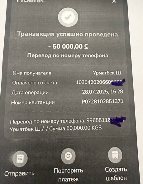 «Жаңы министрдин кызматтан кетирилишинин себеби — ал министрдин орун басары кызматында иштеп турганда пара алган деп шектелүүдө. Аталган министрликтин бөлүм кызматкерин кызматынан жогорулатуу үчүн 2025-жылдын жай айларында пара талап кылган. Кызматкер айтылган сумманын жарымын ал кездеги ӨКМ министринин орун басары Урматбек Шамыркановдун электрондук капчыгына которуп бергенин айткан (1-сүрөт).