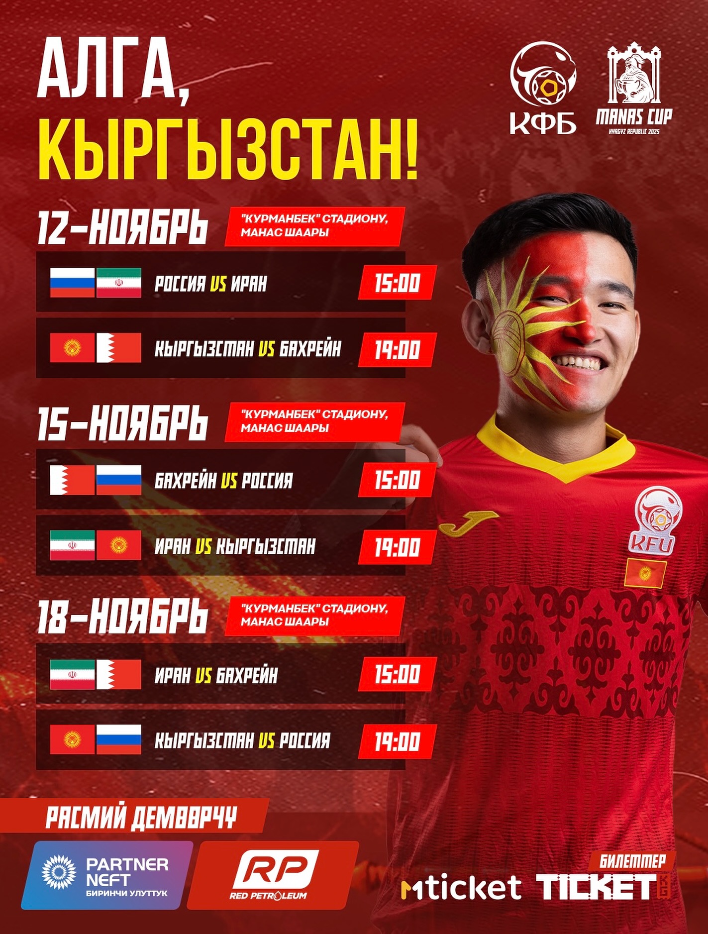 12,15,18-ноябрь күндөрү Манас шаарында эл аралык MANAS CUP 2025 (U-23) эл аралык футболдук мелдеши өткөрүлөт.