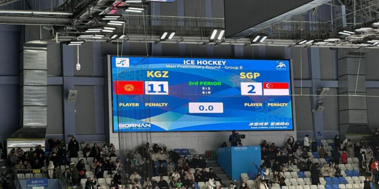 Харбинде өтүп жаткан Азиадада хоккей боюнча кыргыз курама командасы Сингапур командасын 11:2 эсебинде жеңди. Бул тууралуу Дене тарбия жана спорт департаментинен билдиришти.