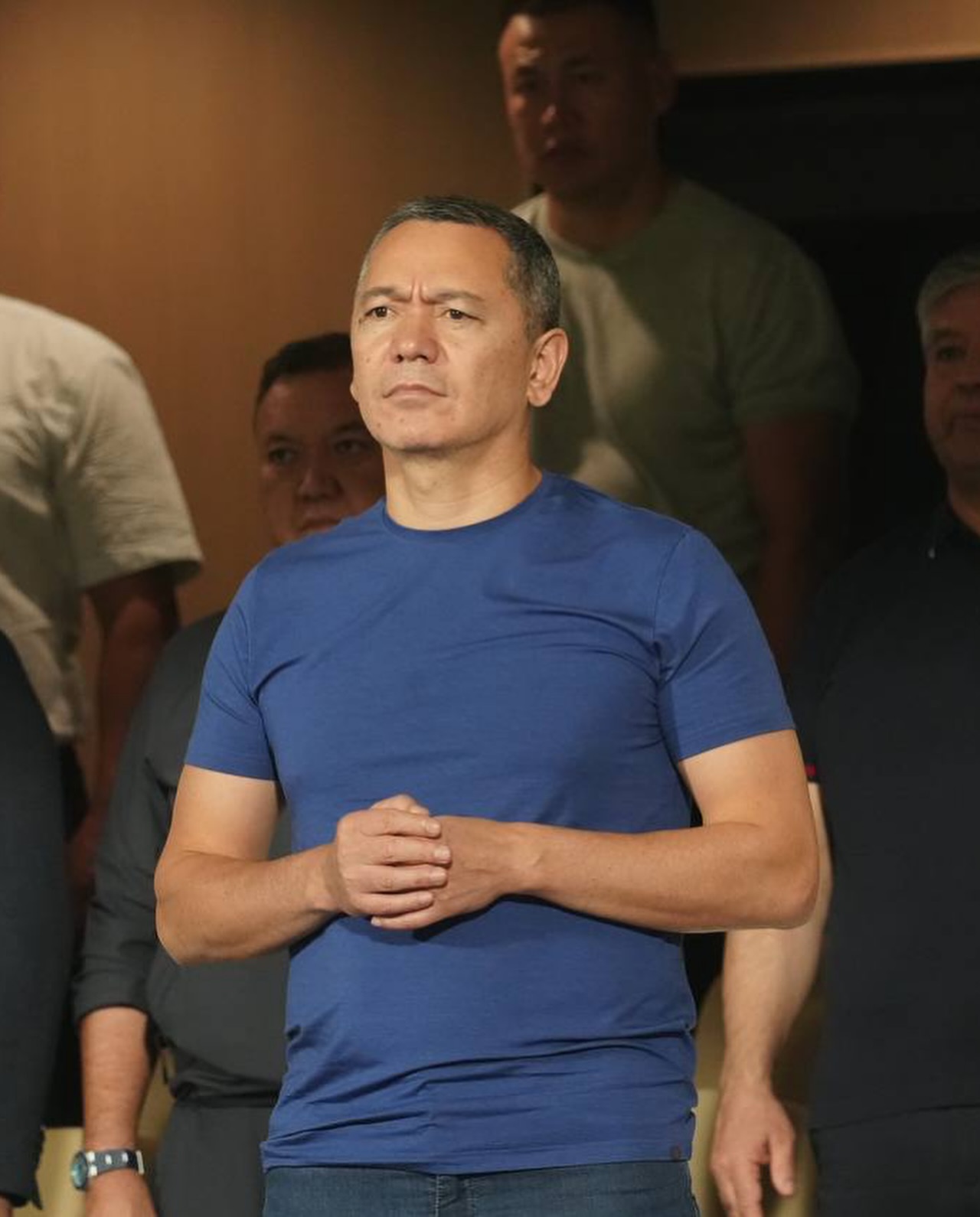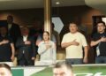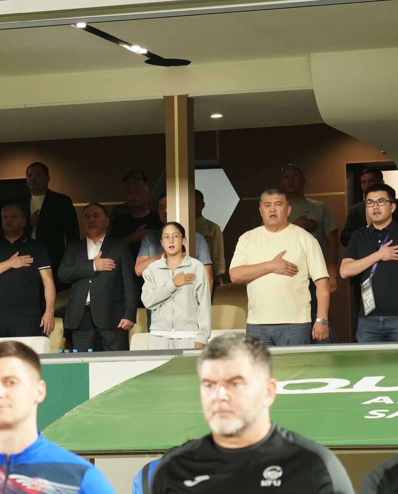 Оюнга КФБ президенти Камчыбек Ташиев, КФБ Башкы катчысы Медербек Сыдыков жана коноктор олимпиадалык курамага стадиондон күйөрмандык кылышты.