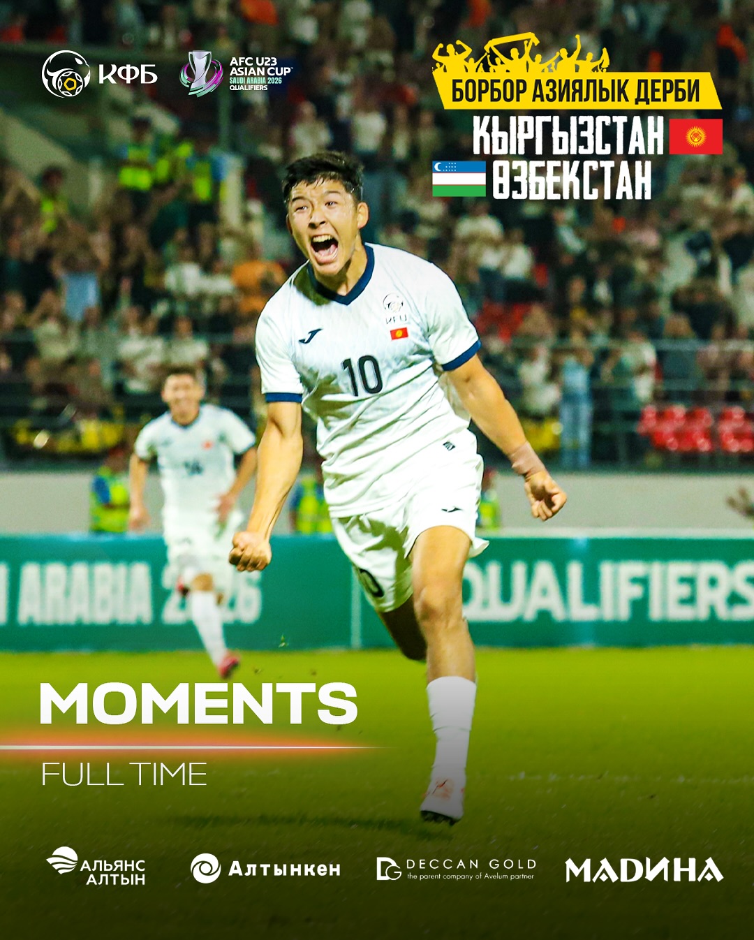 Мелдеш кечээ, 6-сентябрда Дөлөн Өмүрзаков атындагы стадиондо, 2026-жылдагы Азия Кубогунун тандоо этабынын алкагында өттү. Командалар Е тайпасында ойноду. Бул тууралуу Спутник жазды.