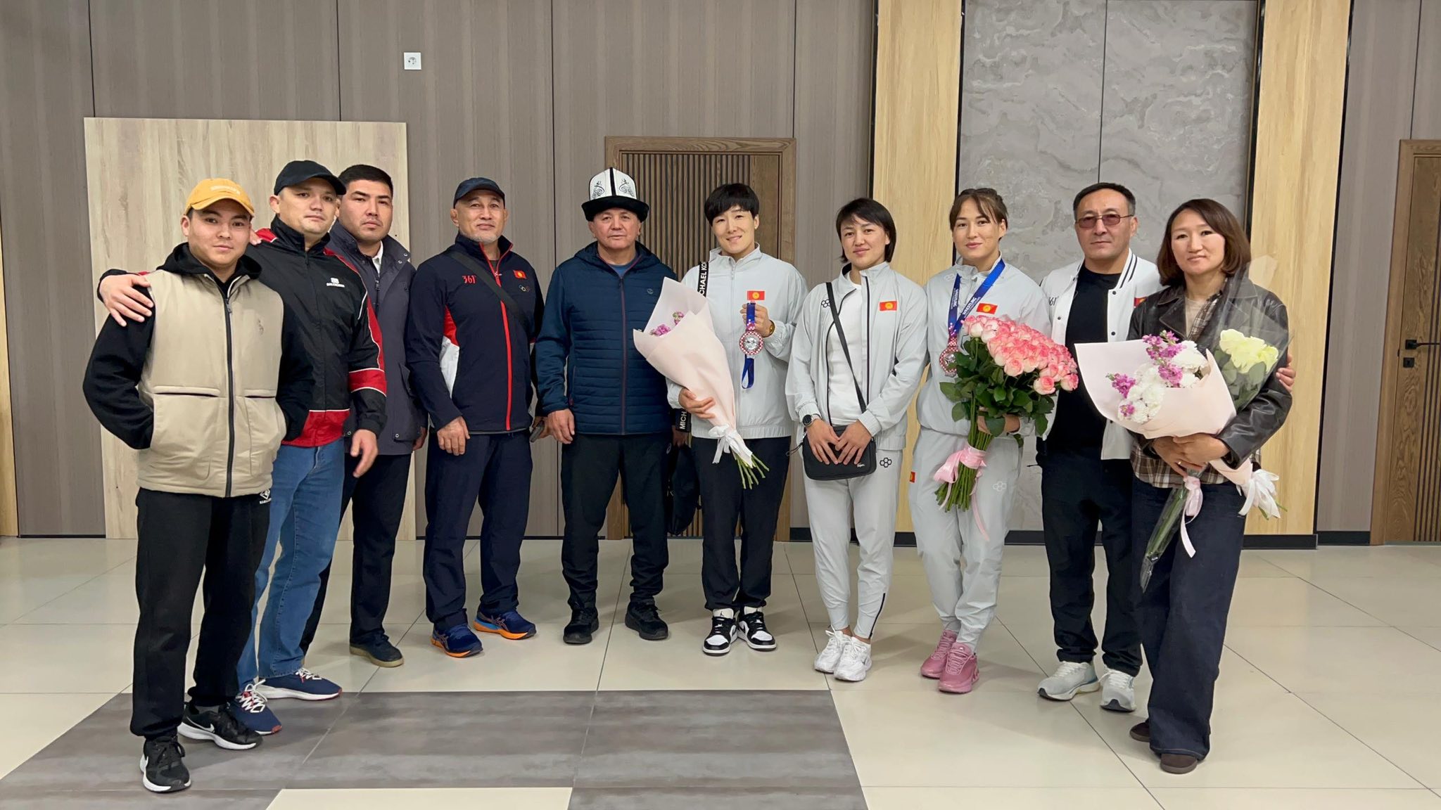 Спортчуларды “Манас” эл аралык аэропортунан Дене тарбия жана спорт мамлекеттик агенттигинин алдындагы Спорттун олимпиадалык түрлөрү боюнча дирекциясынын директору Мелис Тобокелов, ошондой эле балбандардын жакындары жана күйөрмандары тосуп алды. Аталган чемпионаттан Кыргызстандын кыз-келиндер курама командасы эки медаль кайтып келди: