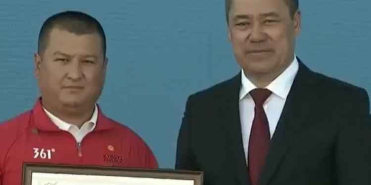 Мушкер Мунарбек Сейитбек уулунун Парижге барбай калган машыктыруучусу Беганас Султанбаев 2 миллион 500 миң сомдук сертификат менен сыйланды.