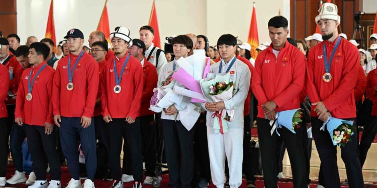Аэропорттон спортчуларды мамлекеттик катчы Сүйүнбек Касмамбетов, Министрлер кабинетинин төрагасынын орун басары Эдил Байсалов, маданият, маалымат, спорт жана жаштар саясаты министри Алтынбек Максүтов салтанаттуу тосуп алышты. Ошондой эле концерттик программа тартууланды.