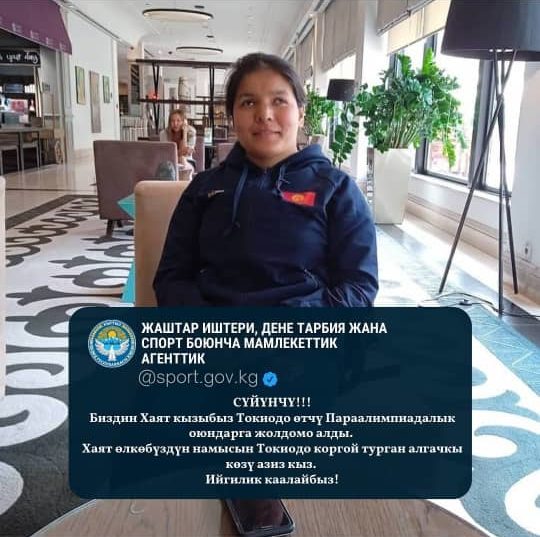 Кыргызстандын тарыхында биринчи жолу көзү азиз кыз Паралимпиадага катышат. Бул тууралуу Жаштар иши, дене тарбия жана спорт агенттиги билдирди. Маал...