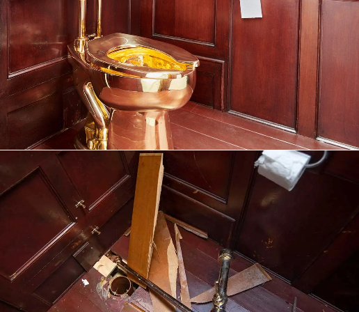 18 карат алтындан жасалган унитаз италиялык сүрөтчү Маурицио Каттелан тарабынан жаралган колдонууга жарамдуу арт-объект. 2016-жылы унитаз Нью-Йорктогу музейде көргөзмөгө коюлуп, андан кийин Блейнхайм ак сарайына жеткирилип, Черчилль төрөлгөн бөлмөнүн каршысына орнотулган. 2019-жылы унитаз уурдалган.