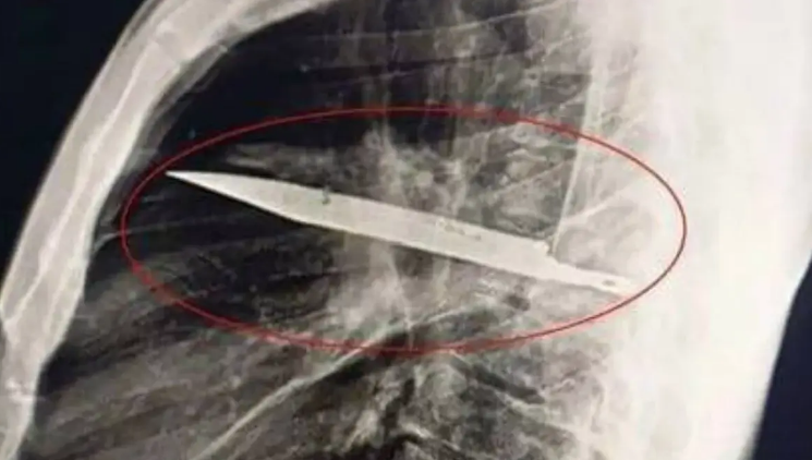 44 жаштагы киши оң тарабынан ириң агып жатканына даттануу менен ооруканага кайрылган. Текшерүү учурунда дарыгерлер дароо себебин аныктай алышкан эмес. Оорулуу сегиз жыл мурун мушташ учурунда бычак жегенин эстегенде абал айкын болгон.